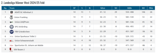 Die letzte Runde der 2. LL West fand beim Herbstmeister Höhnhart statt. Zuerst trat die FBV Mannschaft gegen die Herren aus Schwanenstadt an. Trotz 2:0 Führung in Sätzen konnten wir das Spiel nicht für uns entscheiden und somit ging es dann 2:3 an die „Schwan-Bombers“